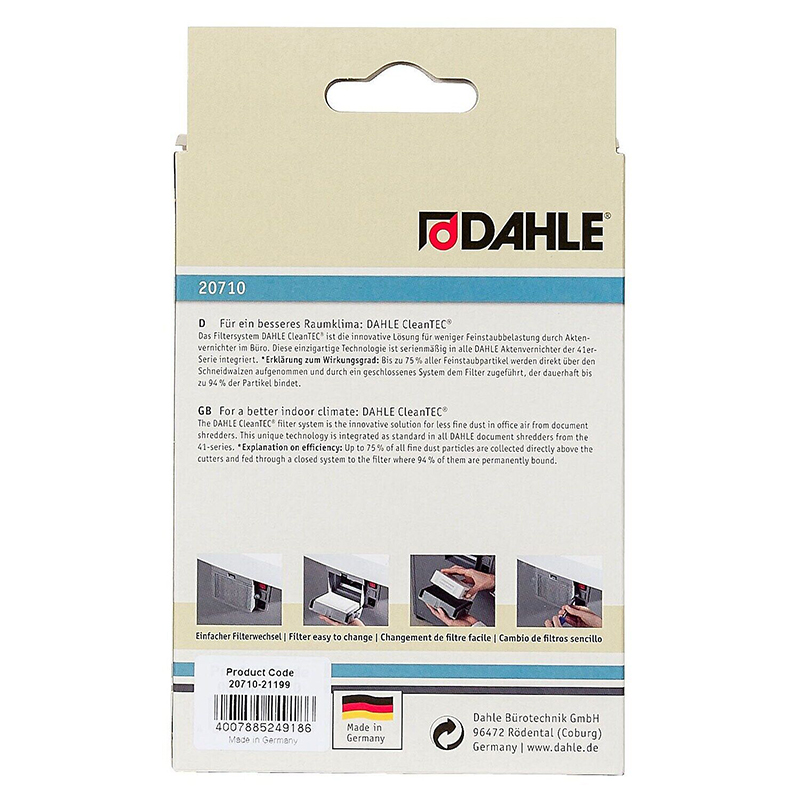 Dahle 20710 CleanTEC finstøvfilter for Dahle CleanTEC makuleringsmaskiner,