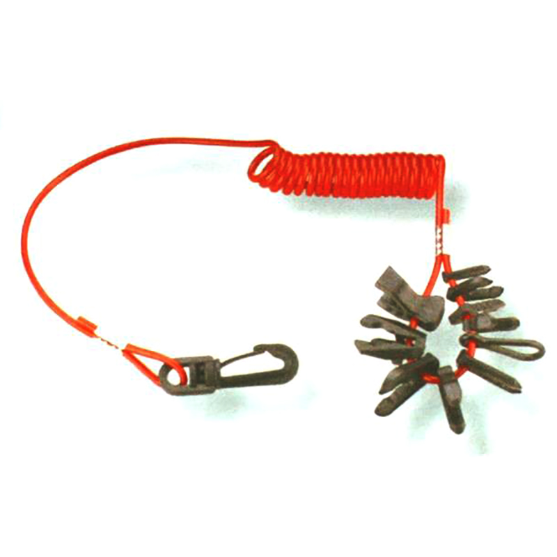 Dødmannsbryter-sett. Settet inneholder spiralsnor med svivel, samt 10 stk. nøkler til dødmannsbrytere. Passer de aller fleste modeller fra Johnson, Evinrude, Yamaha og Honda.