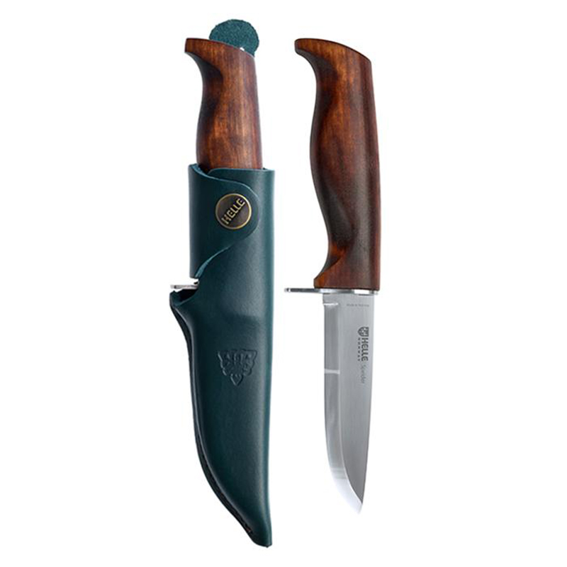 Helle Speider er ein god startkniv for dei som ønsker ein solid kniv med god beskyttelse.Speider var i si tid designa for større speidere som hadde nok erfaring til å gå vidare til en større og kraftigere kniv. Handtaket i mørkolja bjørk er ergonomisk tilpassa et godt firefingersgrep, og den solide fingerstopperen gir god beskyttelse når en arbeider med kniven. Bladet er i 12C27 med en tynn, skandinavisk slip og kommer sylskarp ut av slira.