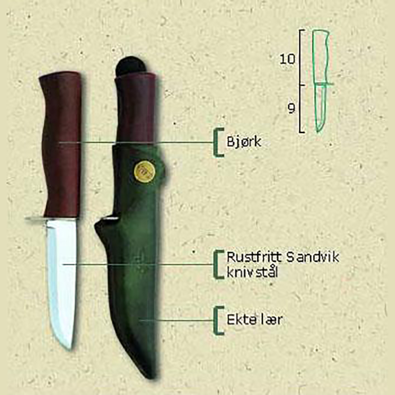 Helle Speider kniv. Speiderkniv til tur med fingerstopp