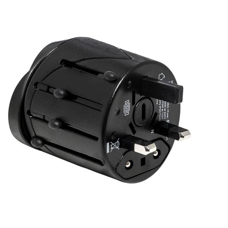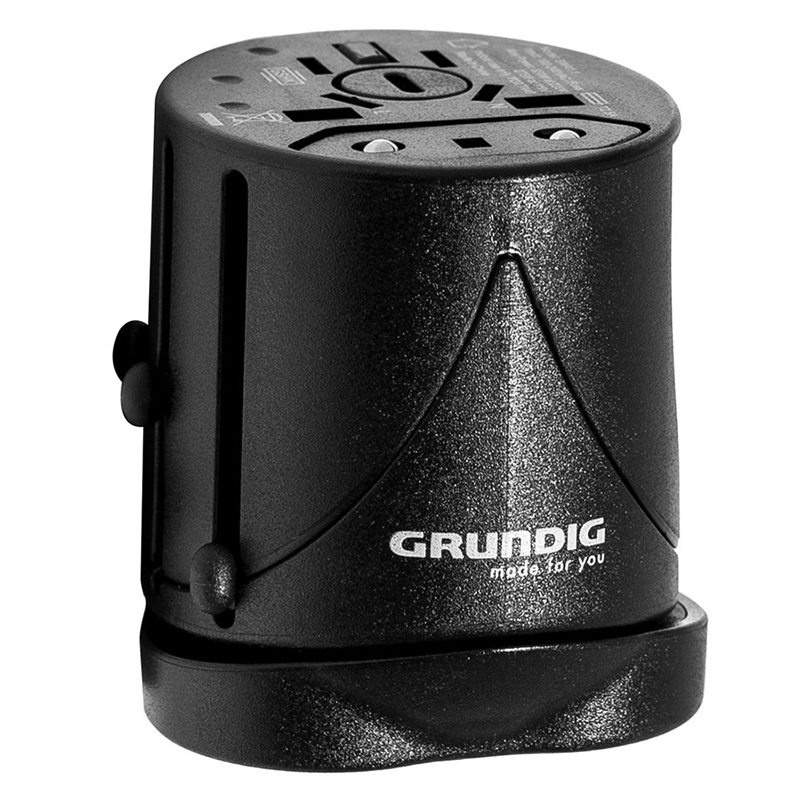 Internasjonalt reiseadapter fra Grundig. Kompakt adapter til reise. Passer til de fleste land.