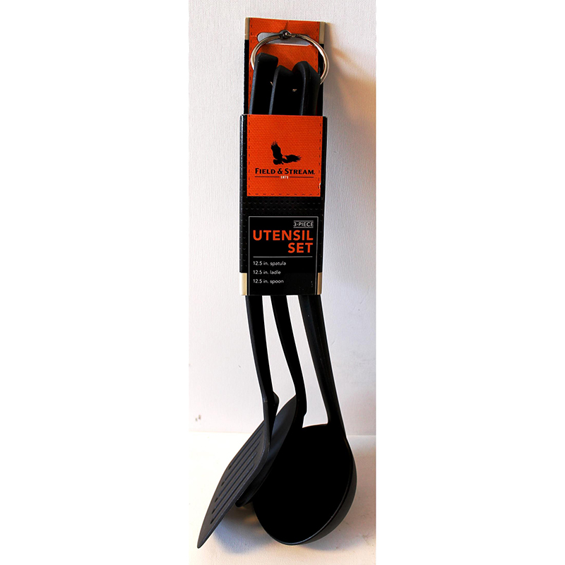 Praktisk redskapssett for kjøkkenet, båten og bobilen. Består av øse, sleiv/skje og stekespade. Lengde 31 cm.