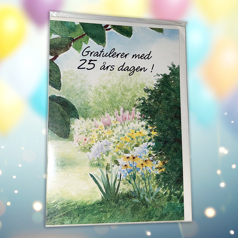 Kort Bursdag 25 år, dobbelt med konvolutt.