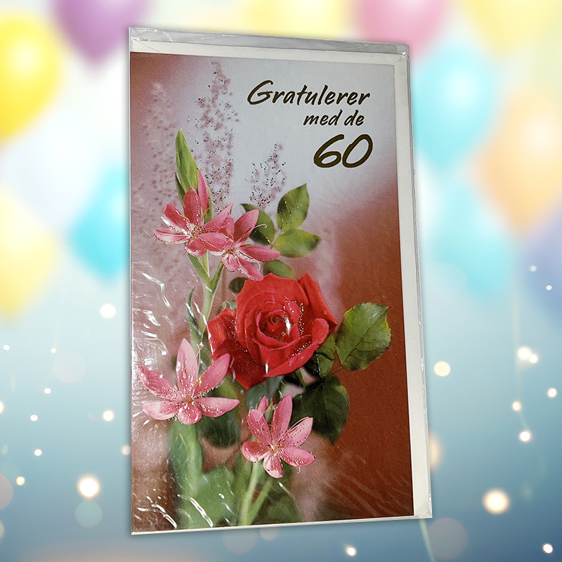 Kort Bursdag 60 år, dobbelt med konvolutt.