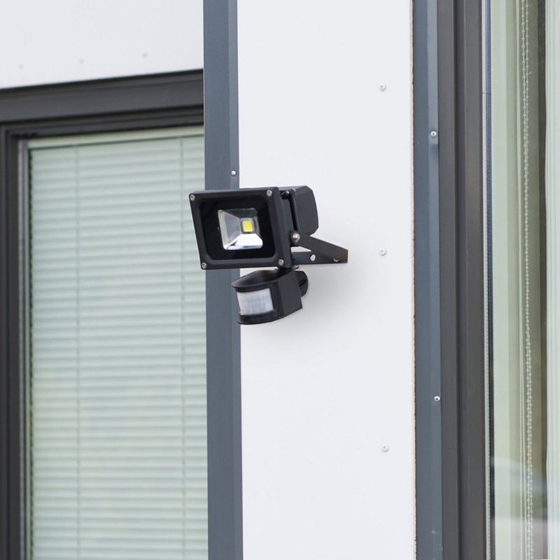 Kraftig LED flomlys med PIR-bevegelsessensor på 180 grader. Flomlyset er IP44 sertifisert, og tåler helårsbruk. Sensitivitet, lysstyrke og tid er justerbart.