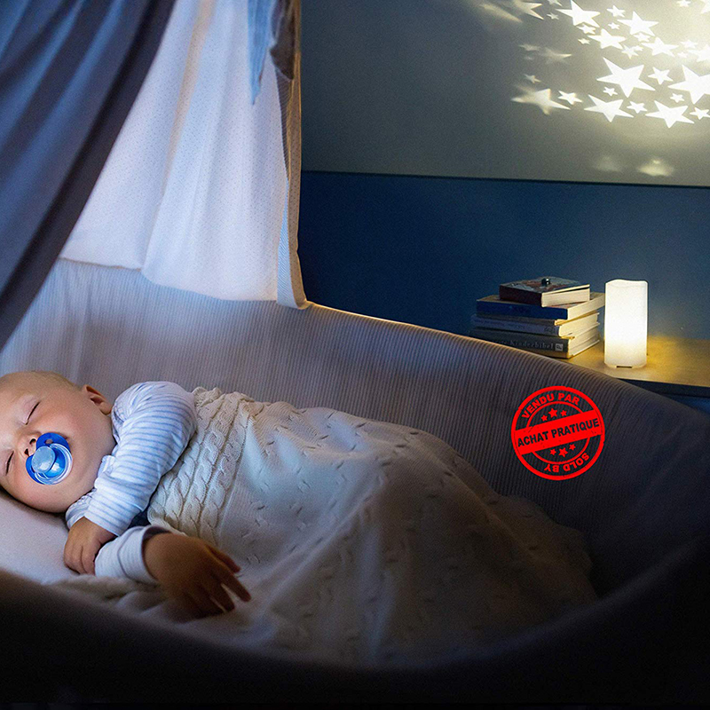 To stearinlys med LED projekterer stjerner