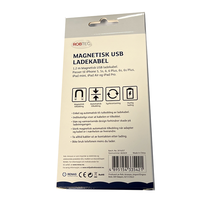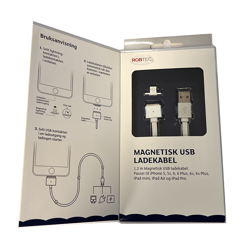 Med magnetisk kabel beskytter du ladeporten mot støv og unødvendig slitasje. Super enkel tilkobling!