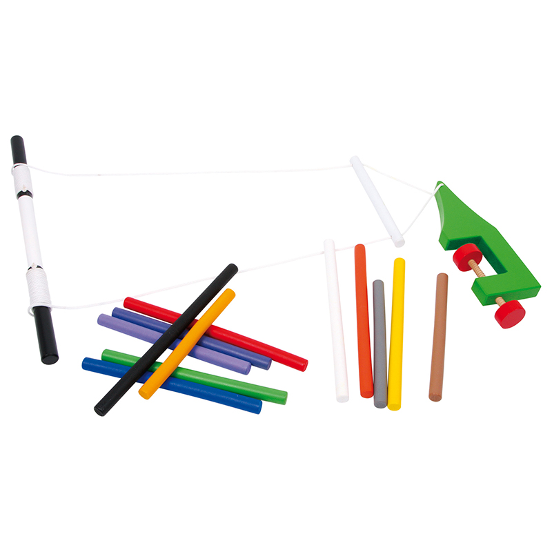 Fest treklemmen på bordet og hold båndene stramt. Behendighet og stabile nerver er påkrevd. Bare den som har en stabil hånd, er i stand til å balansere de fargede trebjelkene over den bredere måten!