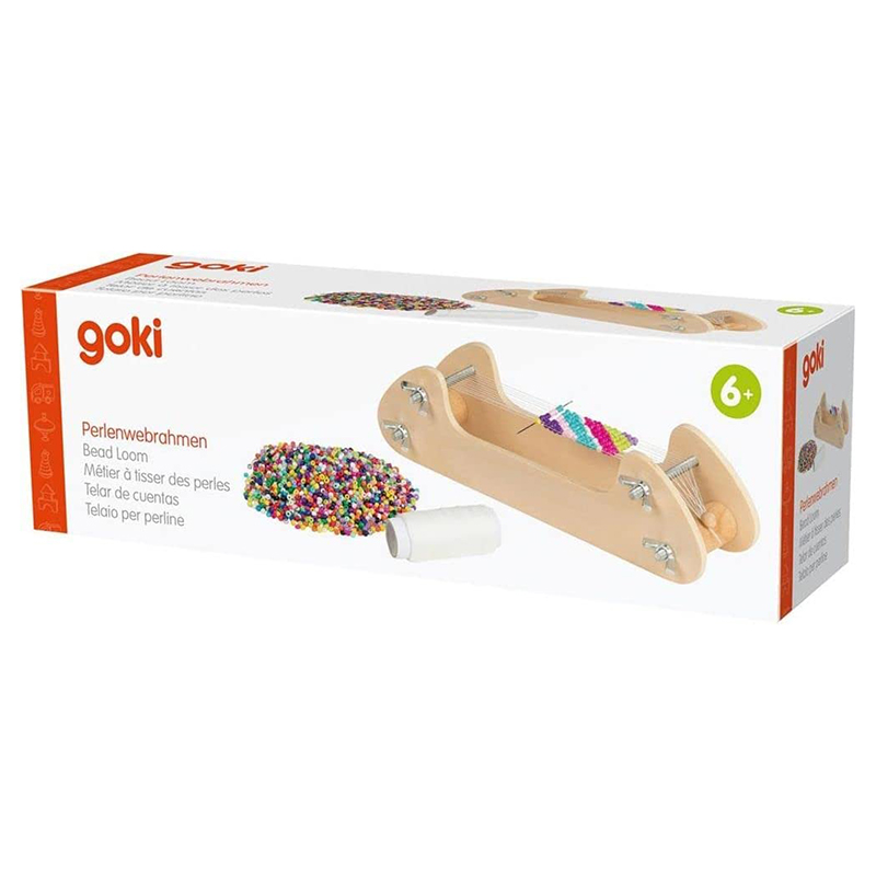 Goki-perlen veven. De vakreste smykkene kan lages av de medfølgende akrylperlene ved hjelp av perleveverammen. For øvrig trenes motorikken til de unge smykkedesignerne. Den stabile treveven garanterer mange, mange aktive, underholdende vevetimer.