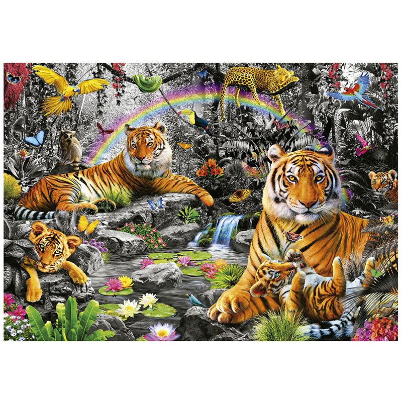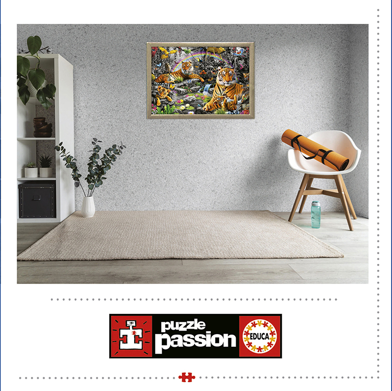 Et stort pusslespill fra Educa puzzle med tiger i jungelen.