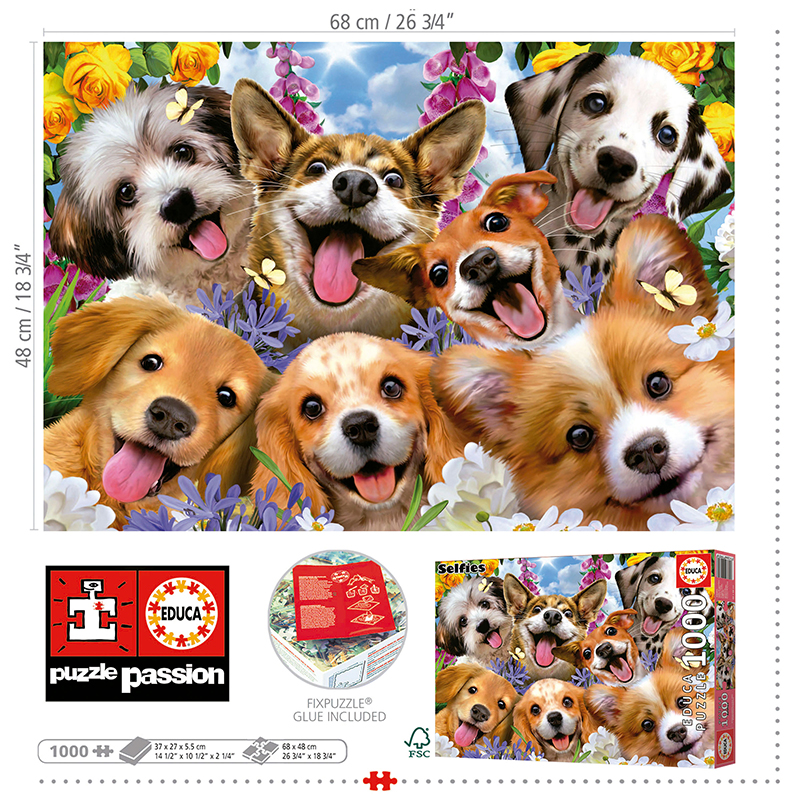 Puslespill Puppie selfie, Educa 1000 biter / brikker. Et pusslespill fra Educa puzzle.