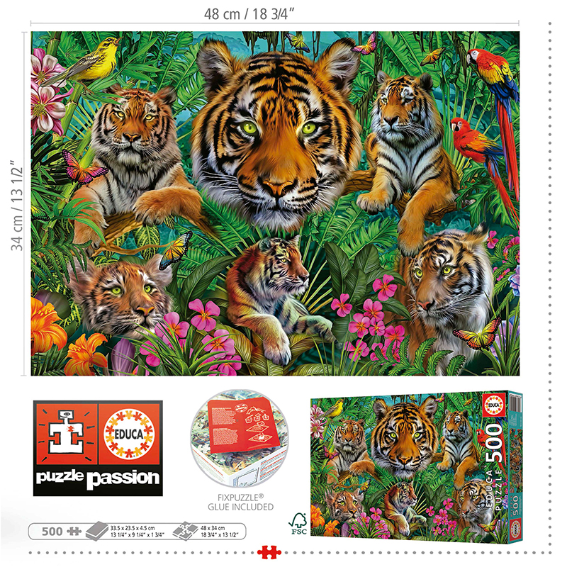 Puslespill Tiger jungle, Educa 500 biter / brikker. Et pusslespill fra Educa puzzle.