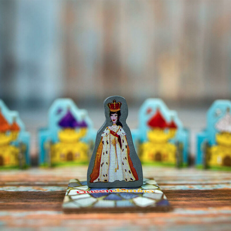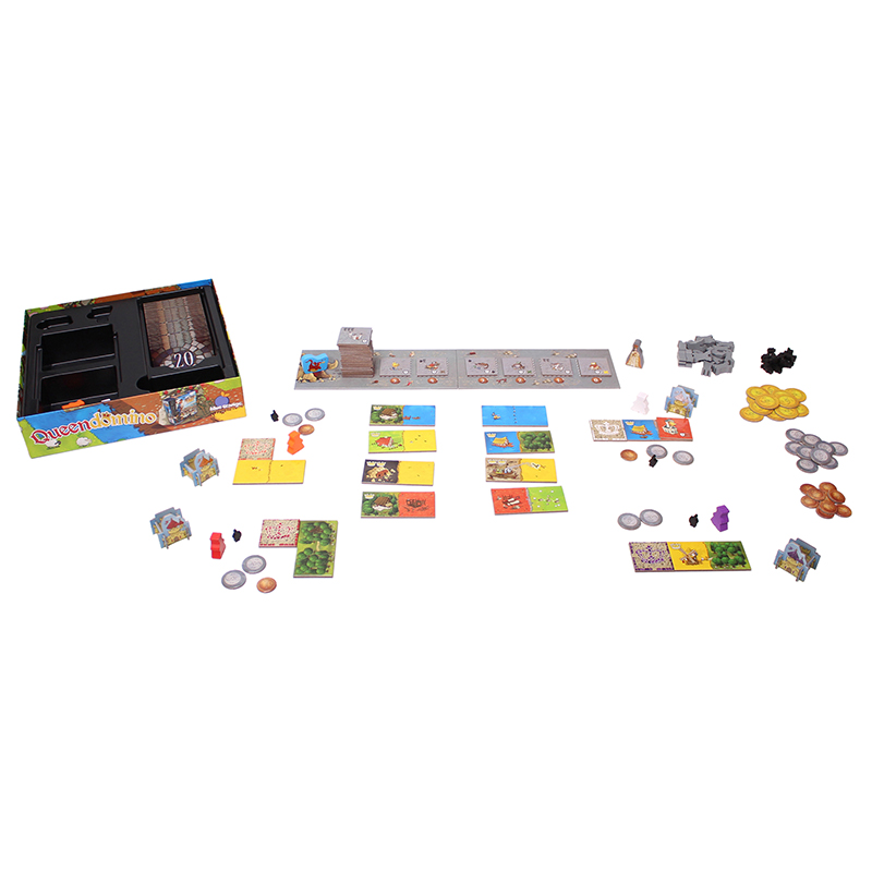 Queendomino er et frittstående spill bygd rundt de samme mekanikkene som Kingdomino, men med større utfordringer underveis. Queendomino er i utgangspunktet for 2 – 4 spillere. Men hvis dere inkluderer brikkene fra Kingdomino, vil dere kunne lage kongeriker på 5×5 med seks spillere – eller eventuelt 7×7 med fire spillere!