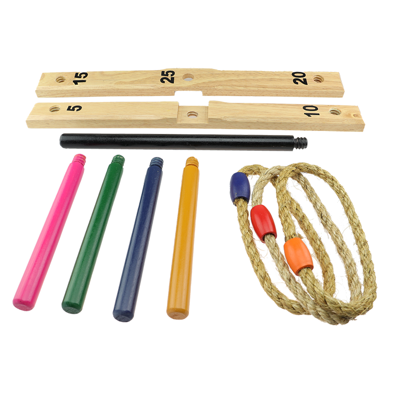 Morsomt spill for alle aldre, der det gjelder å oppnå høyest poengsum ved å kaste ringene på stikkene.