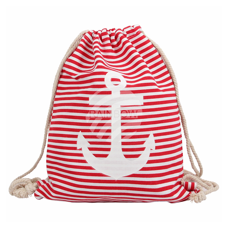 Ryggsekk-gymbag maritim Strandbag. rød/hvit