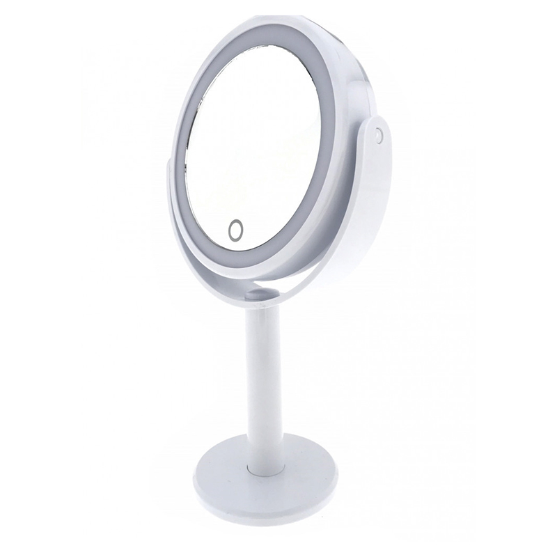 Supert sminkespeil med 20 LED-lys som gir et godt lys og hjelper deg med å legge en perfekt make-up. Lyset tennes med en touch sensor nederst på glasset. Speilet kan roteres 360° og det er tosidig med 5X forstørring på andre siden. Gir en perfekt refleksjon for sminkepåføringer, pinsett og andre ansiktsbehandlinger.
