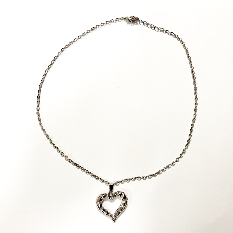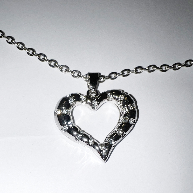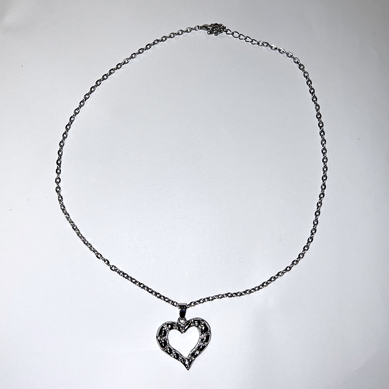 Smykke halskjede med åpent hjerte og lukket hjerte med tekst