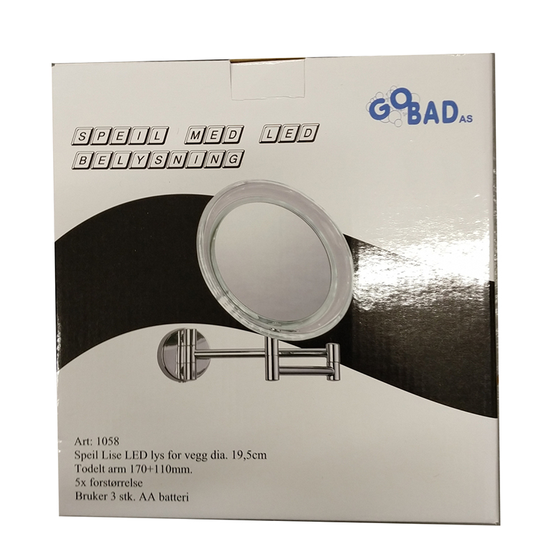 Speilen har 2 sider, hvorav den ene har 5x forstørrelse.