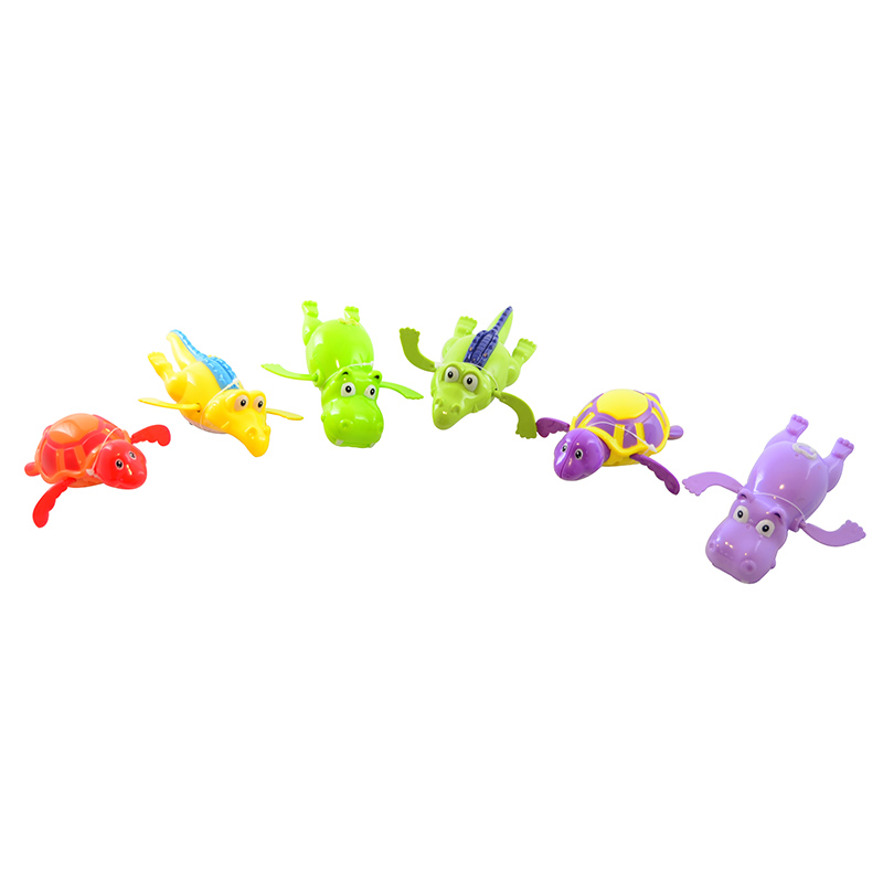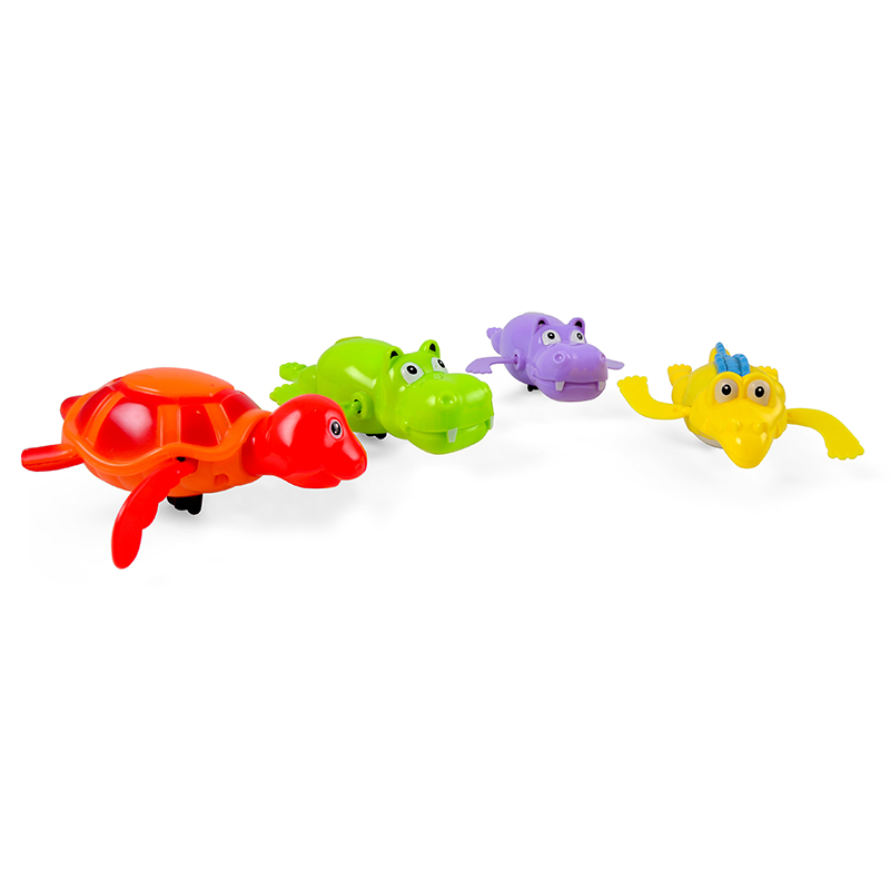 Trekk opp badedyr, skildpadde, krokodille, flodhest. En koselig liten badeleke til bading.